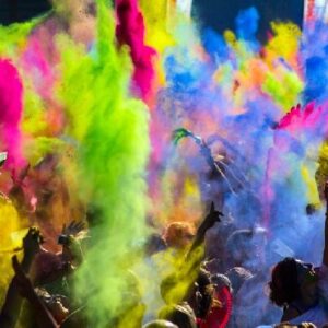 These spray bottles filled with holi color powders from India are used among others as holi powder shooters.