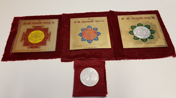 Drie Yantra’s voor kennis, wijsheid en rijkdom.